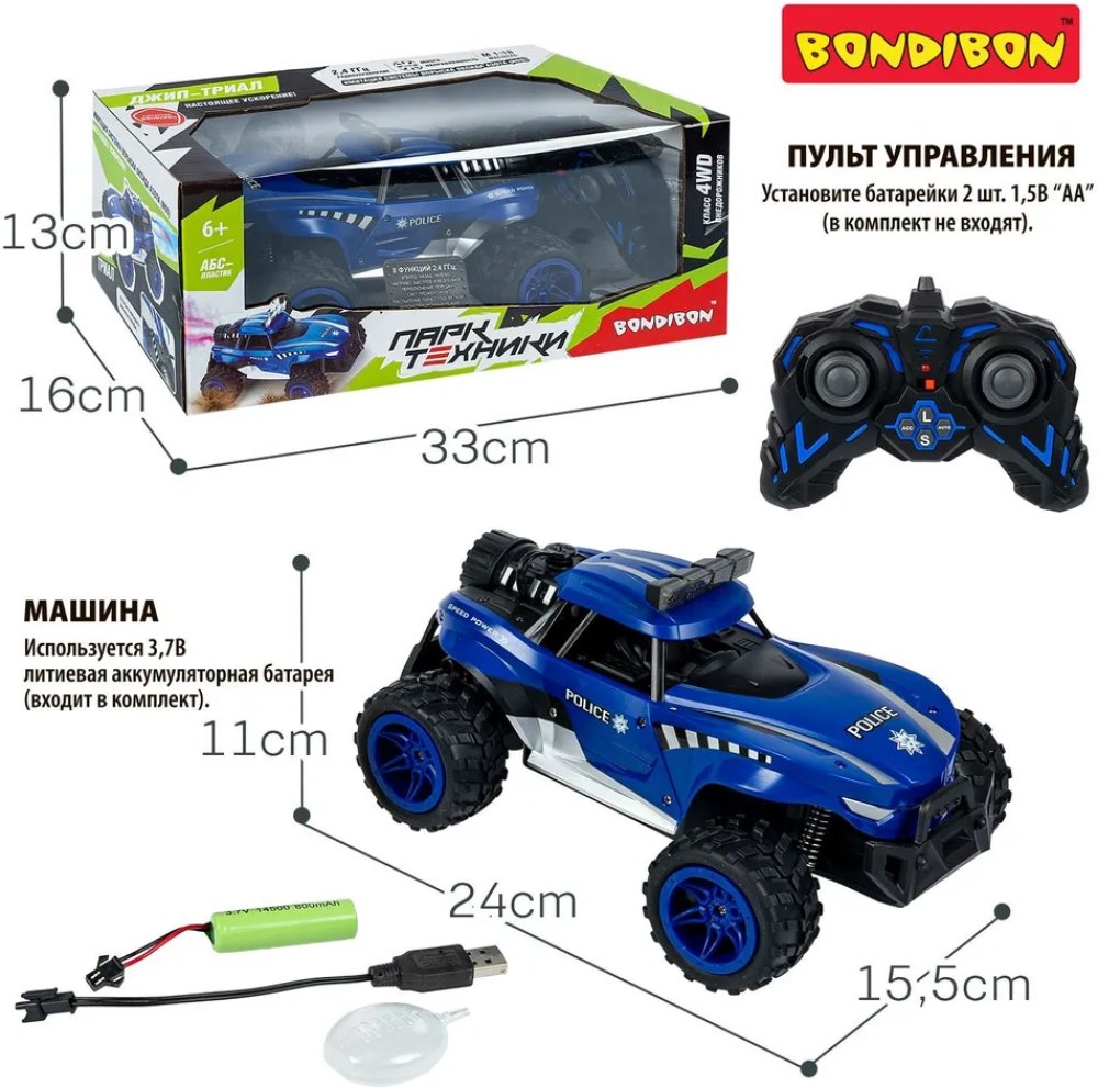 Машина на пульте радиоуправления ДЖИП-ТРИАЛ от бренда Bondibon из серии Парк Техники способна двигаться во все стороны с имитацией огненного выхлопа. Игрушка в масштабе 1:18 с синим корпусом из ABS-пластика оснащена большими колесами на пружинной подвеске. Благодаря 2,4 ГГц 4-канальному радиоуправлению в гонки можно играть с друзьями, не мешая друг другу. Имитация системы впрыска оксида азота добавляет эффектности игре. Радиоуправляемый внедорожник 4WD – отличное развлечение, развивающее координацию и реакцию. Машина работает от аккумуляторов. Подключите заряженный аккумулятор и переведите рычаг на дне автомобиля в положение ВКЛ, залейте воду. Установите батарейки в пульт и играйте. Размеры машинки 24,5 х 11,5 х 15 см. Для работы необходимы 2 батарейки типа АА (не входят в комплект) и вода. Время зарядки около 2 часов. USB-провод в комплекте. Бондибон гарантирует высокое качество и безопасность. Позвольте вашему ребенку ощутить радость скорости и маневренности с ДЖИП-ТРИАЛ! Возраст 6+