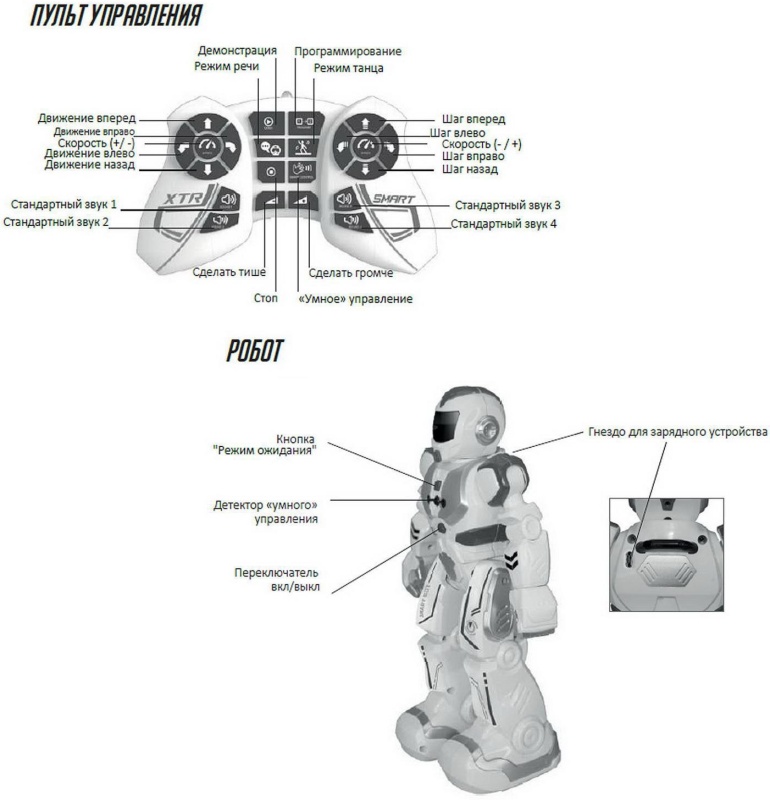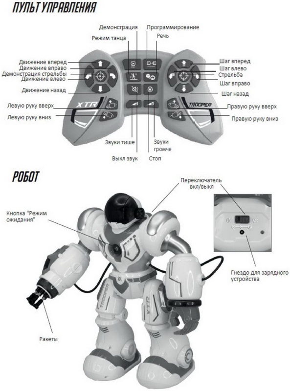 Режим Танец. Режим Речь – при нажатии на соответствующую кнопку на пульте, Избранник начнет разговаривать на языке роботов