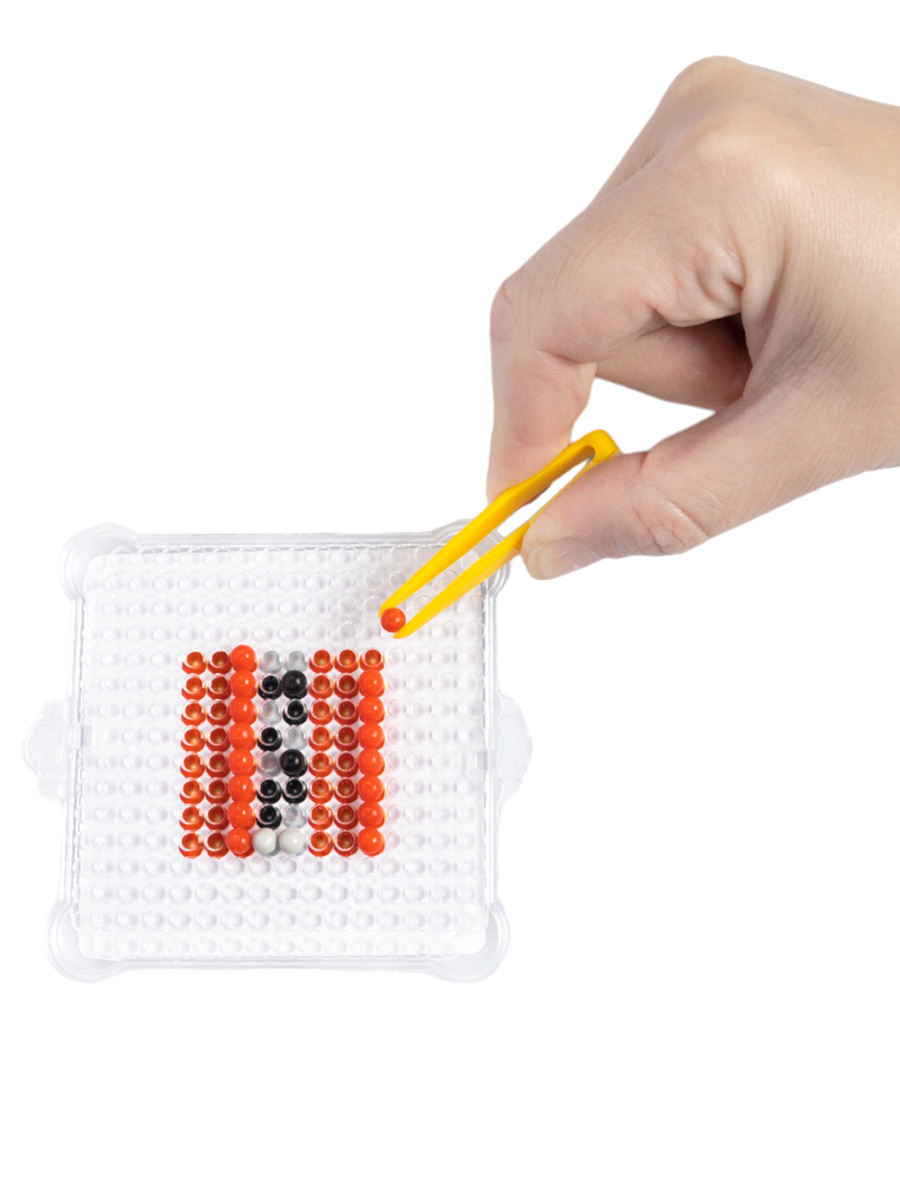 При помощи пинцета разложите бусины в ячейки планшета по шаблону.