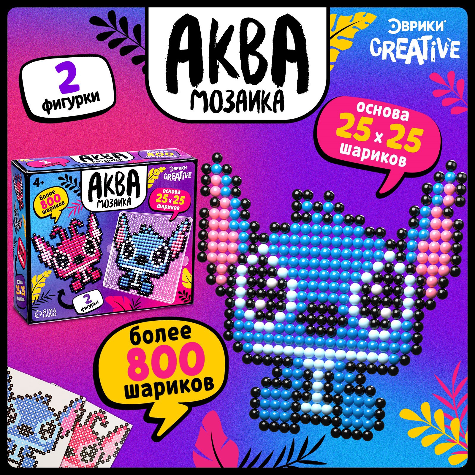 С аквамозаикой «Стич с подружкой» ребёнок соберёт 2 объёмные фигурки из шариков-пикселей. Детали плотно скрепляются друг с другом. С поделками можно играть или украсить интерьер.