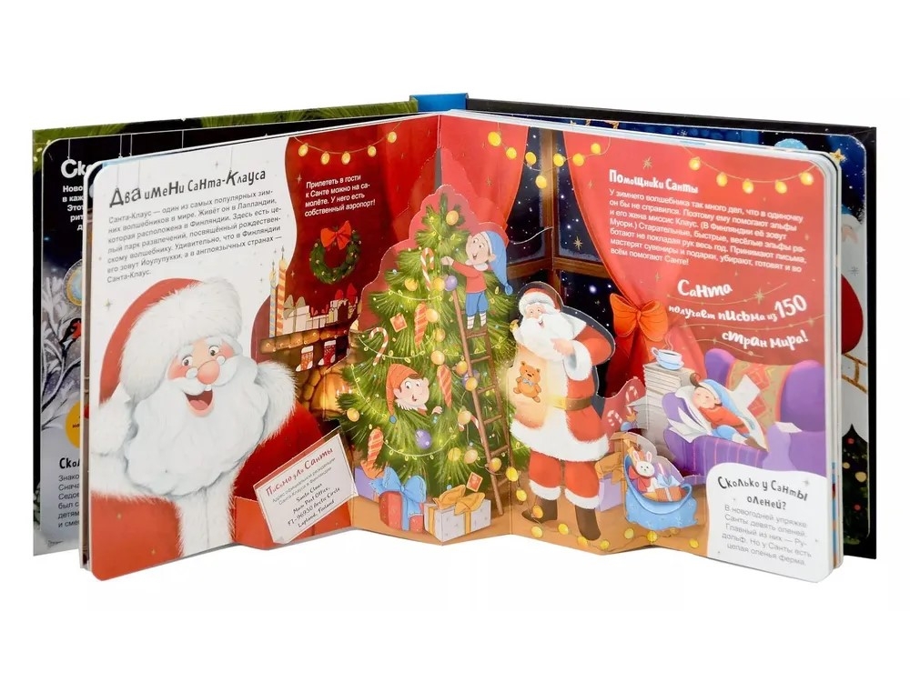 Энциклопедия «Атлас Нового года» — это красочная книга, которая откроет для малыша удивительный мир обычаев народов мира. Маленькие читатели узнают о разнообразных традициях празднования Нового года и Рождества: от ёлочек и подарков до особых блюд и обрядов. Яркие иллюстрации, объёмные POP-UP конструкции и увлекательные окошки помогут погрузиться в праздничную атмосферу разных уголков планеты. А доступный язык сделает информацию лёгкой и интересной для любого малыша. Читайте книжку вместе с вашим ребенком — проводите время интересно и с пользой!
