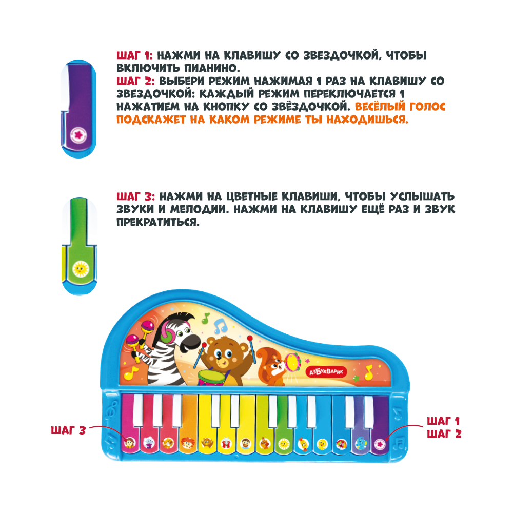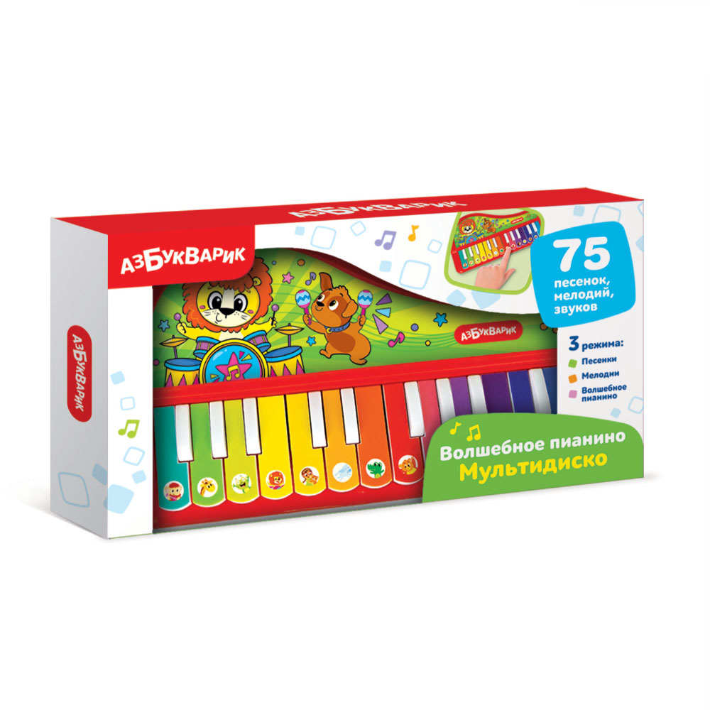 Волшебное пианино «Мультидиско» с ярким привлекательным дизайном создано специально для маленьких детских ручек. Простой, интуитивно понятный способ игры таит в себе так много интересного! Просто переключайте режимы и нажимайте на клавиши, чтобы послушать 75 песенок, мелодий и звуков! Вас ждут такие известные детские шлягеры, как «Песенка Мамонтёнка», «Чунга-Чанга», «Облака» и многие другие, а также свежие хиты от «Азбукварика»!