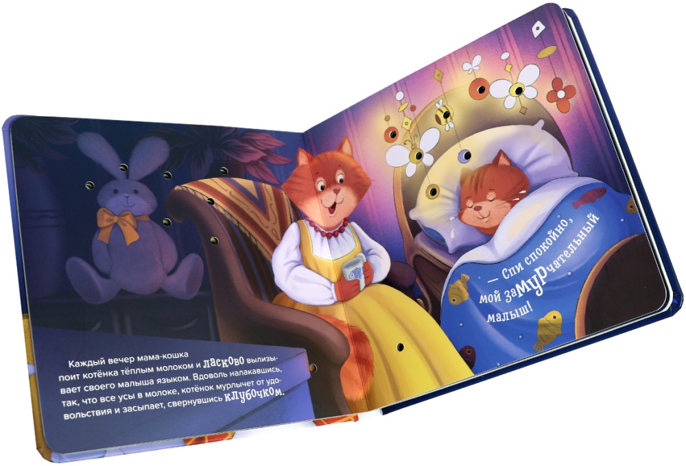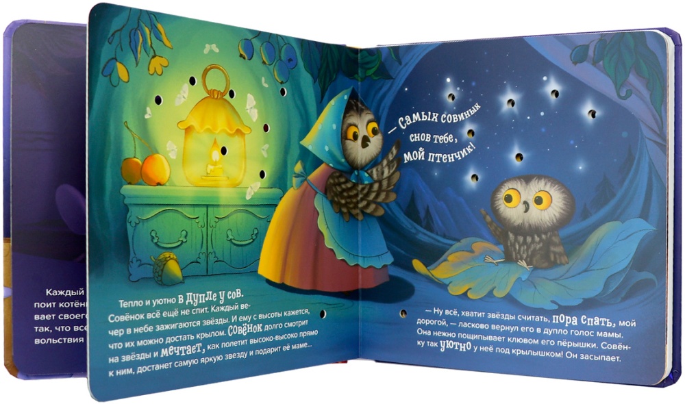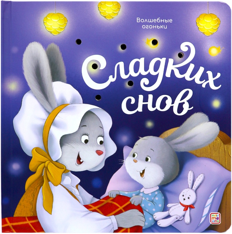 «Волшебные огоньки» — новая серия от торговой марки Malamalama! Самая уютная книга на свете — «Спокойной ночи» — расскажет малышу, как лесные мамы укладывают спать своих малышей-зверят. Милые иллюстрации, добрые персонажи и самые настоящие огоньки на страницах ждут ребёнка в книге. Звёздочки в небе, свечи в комнате, светлячки или фонарики — внутри каждой страницы располагаются светодиоды, которые выглядывают в крошечные отверстия, заставляя их на самом деле светиться. Отройте для себя настоящее волшебство вместе с Malamalama!