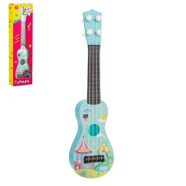 Эта яркая гитара с 4 струнами создана специально для маленьких рук. Без электроники и батареек – звук рождается от реального касания струн.