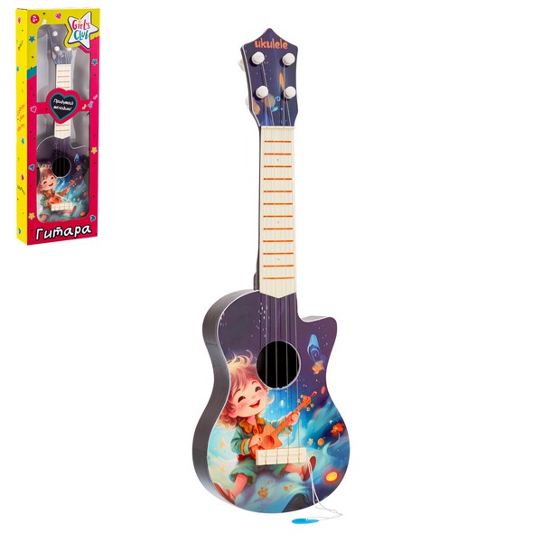 Эта яркая гитара с 4 струнами создана специально для маленьких рук. Без электроники и батареек – звук рождается от реального касания струн.