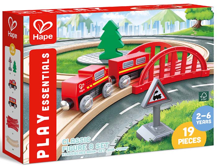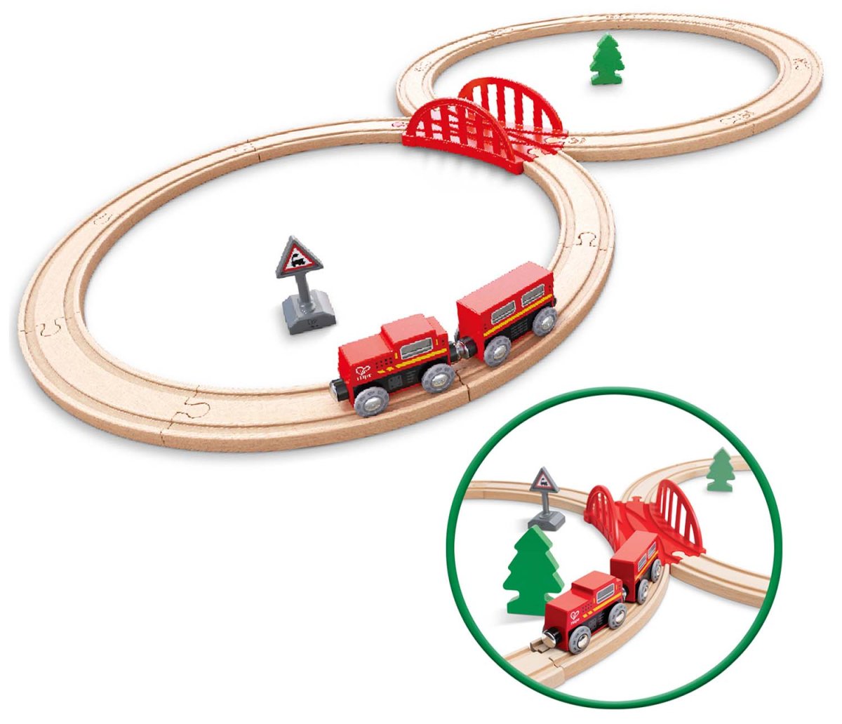 Вы можете расширять свою железную дорогу, приобретая рельсы, аксессуары, поезда или другие комплектующие бренда Hape.