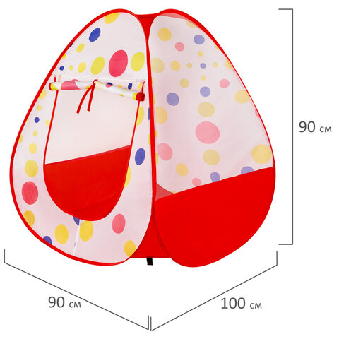 Детская игровая палатка BRAUBERG KIDS представляет собой самораскладывающийся дом для ребенка, который помещается в небольшой сумке размером всего 40х40 см. Домик легко раскладывается и быстро складывается. Размеры палатки в собранном виде – 90х90х100 см.
