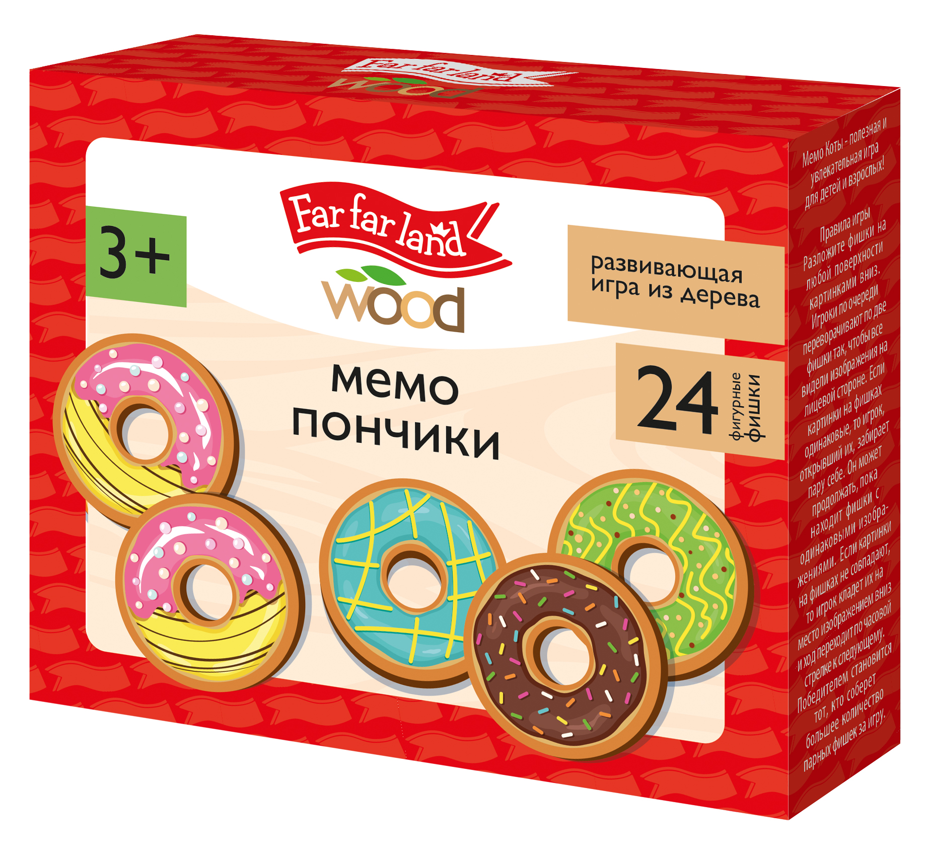 Настольная деревянная игра мемо «Пончики» (24 фишки в пакете) – это развивающая игра для детей.