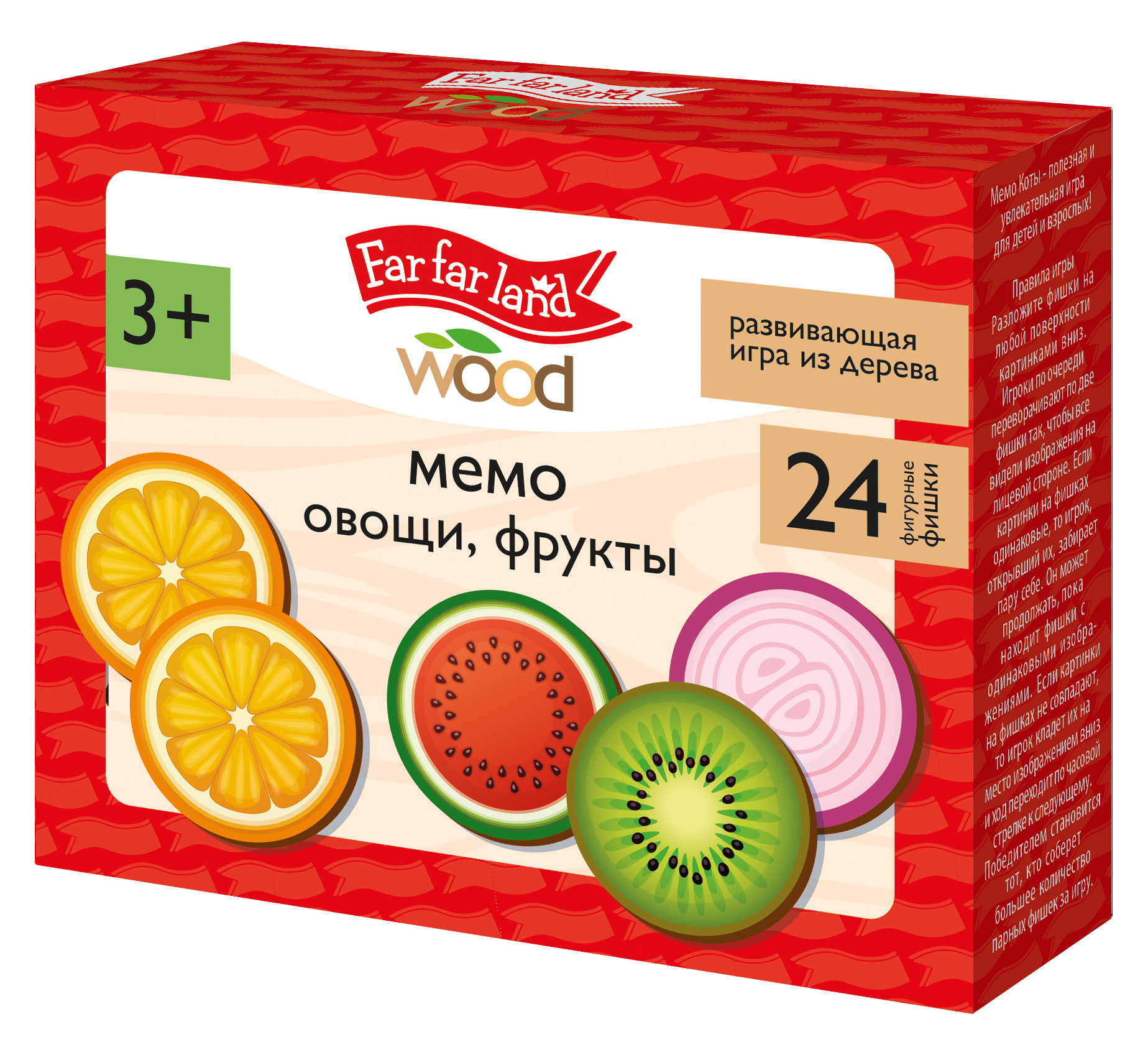 Настольная деревянная игра мемо «Овощи, фрукты» (24 фишки в пакете) – это развивающая игра для детей.