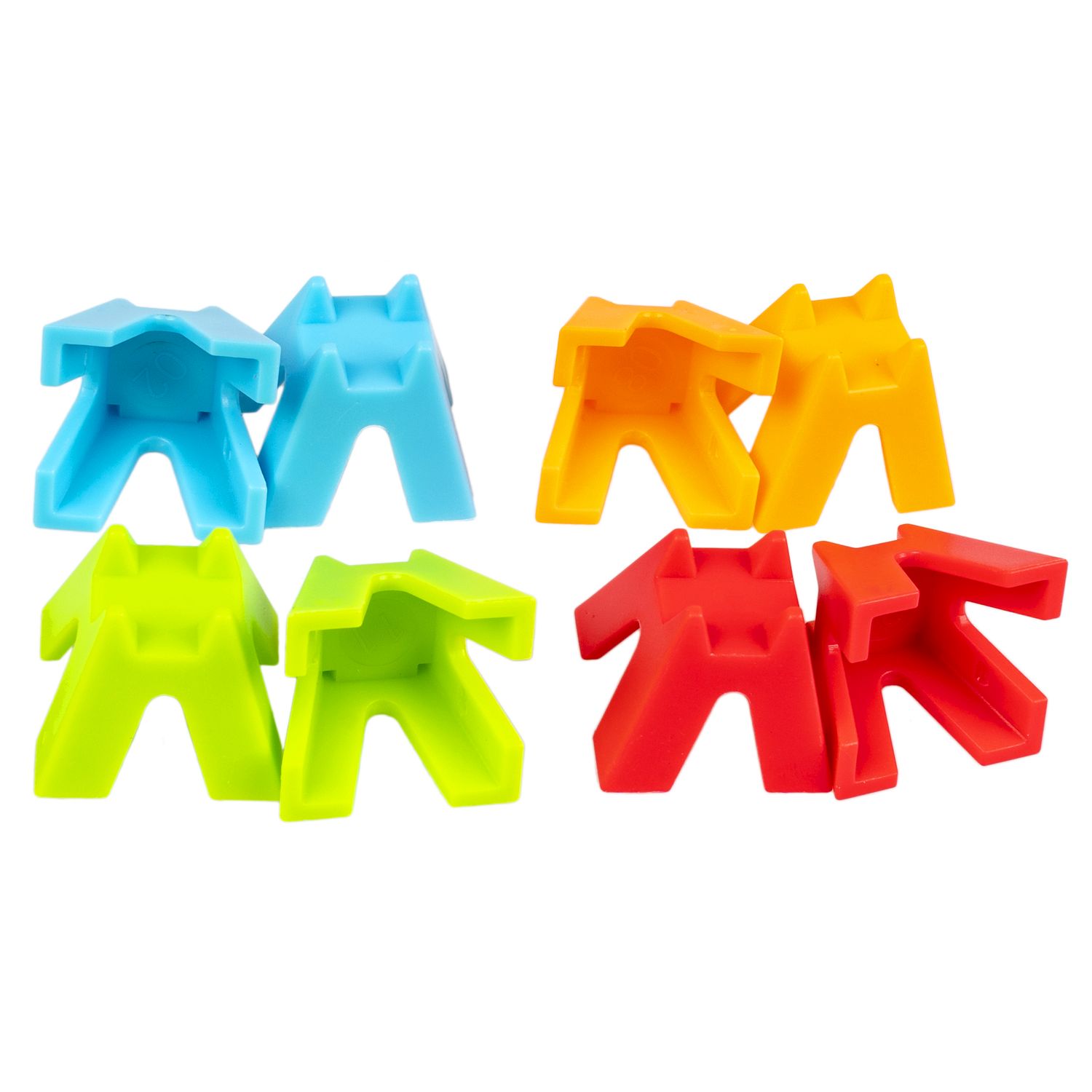 В набор входят: 80 фигурок (20 оранжевых, 20 розовых, 20 зеленых, 20 голубых).