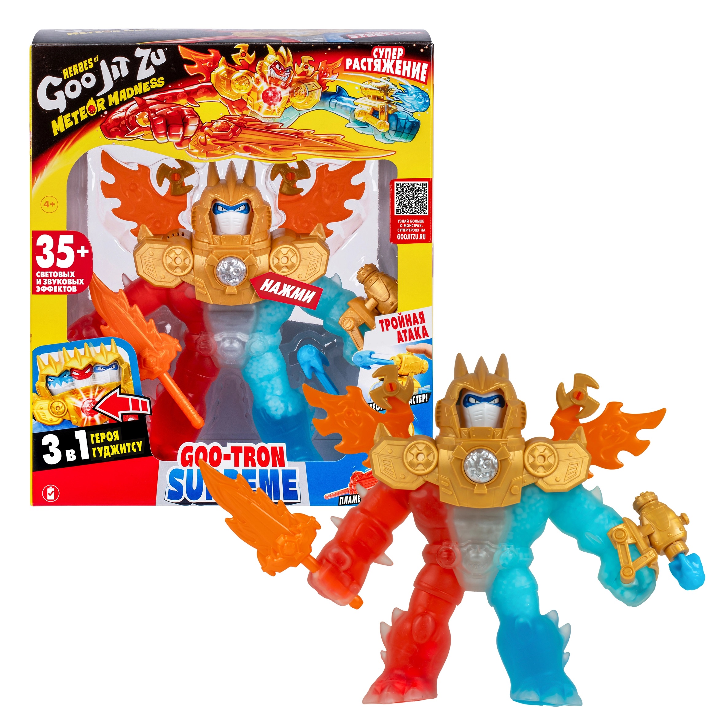 Встречай Непревзойдённого Гу-Трона — самого мощного героя коллекции GooJitZu Метеор Мэднесс! Он объединяет силу трёх легендарных героев: огненного Блейзагота, скрытного Пантаро и неукротимого Траша. Только Гу-Трон способен противостоять разрушительной силе и спасти вселенную Гу от гибели!