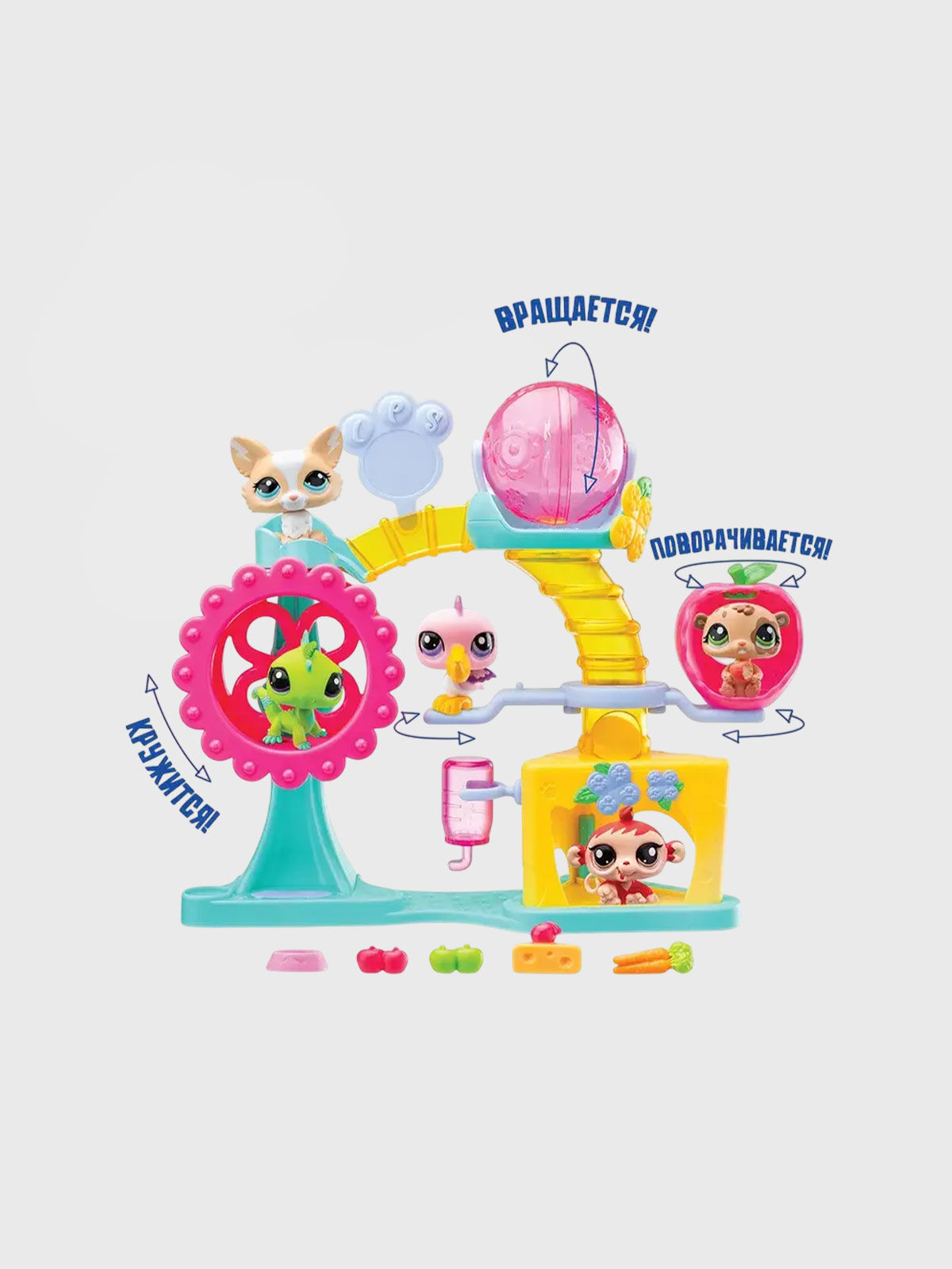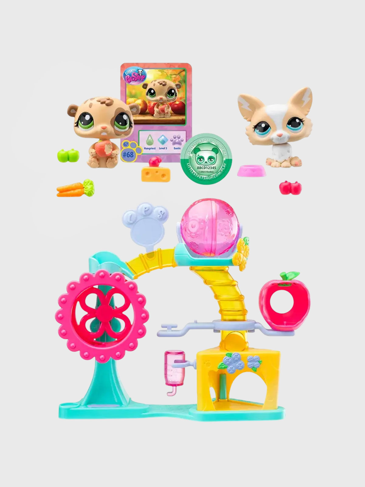 Новая коллекция 2025 от Littlest Pet Shop (лицензия Hasbro) предлагает большой игровой набор “Фабрика развлечений” – с двумя фигурками питомцев и аксессуарами для сюжетно-ролевой игры и коллекционирования.