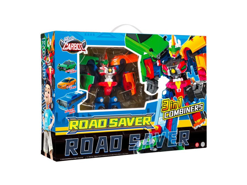 Карбот Сэйвер – многокомпонентный Карбот 3 в 1. Трансформация происходит путём присоединения двух такси – Карботов, прототипов настоящих машин из Кореи, к стильному синему автобусу на свободном ходу. 2 легковых транспортных средства не превратить в отдельных роботов – они являются составными частями Карбота.
