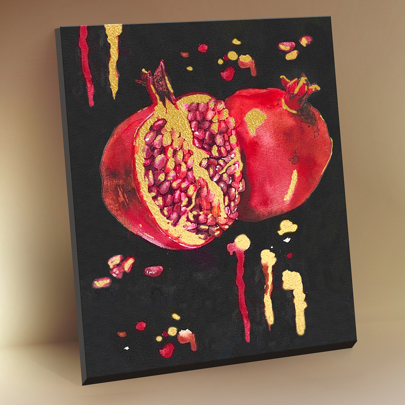 Картина по номерам с поталью 40х50 Черный холст Сочный гранат – это набор для творчества, с помощью которого без специальных навыков и подготовки любой желающий может нарисовать красивую картину.