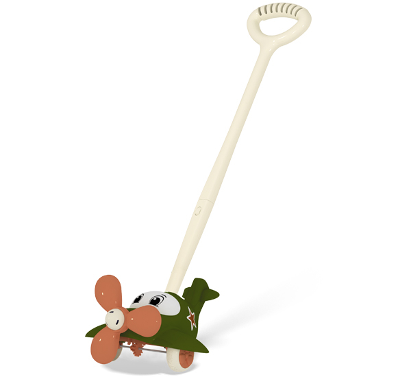 Держась за удобную ручку каталки, ребёнок будет чувствовать равновесие и смелее делать свои первые шаги. Чем быстрее едет игрушка, тем быстрее вращаются лопасти пропеллера самолётика, вызывая у крохи ещё большее желание активно двигаться вперёд.