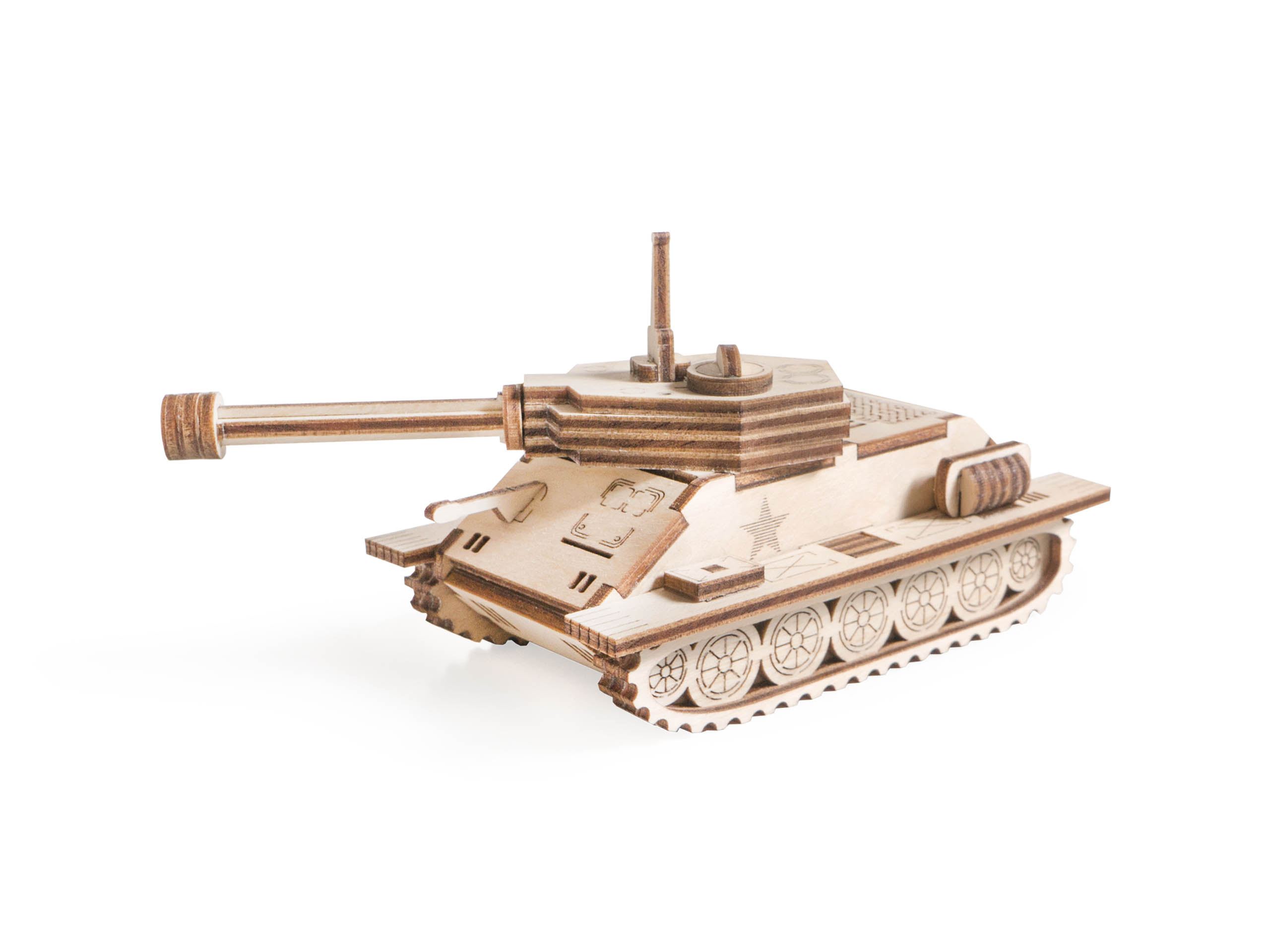 У собранной модели вращается башня и дуло. При желании игрушку можно раскрасить акриловыми красками.
