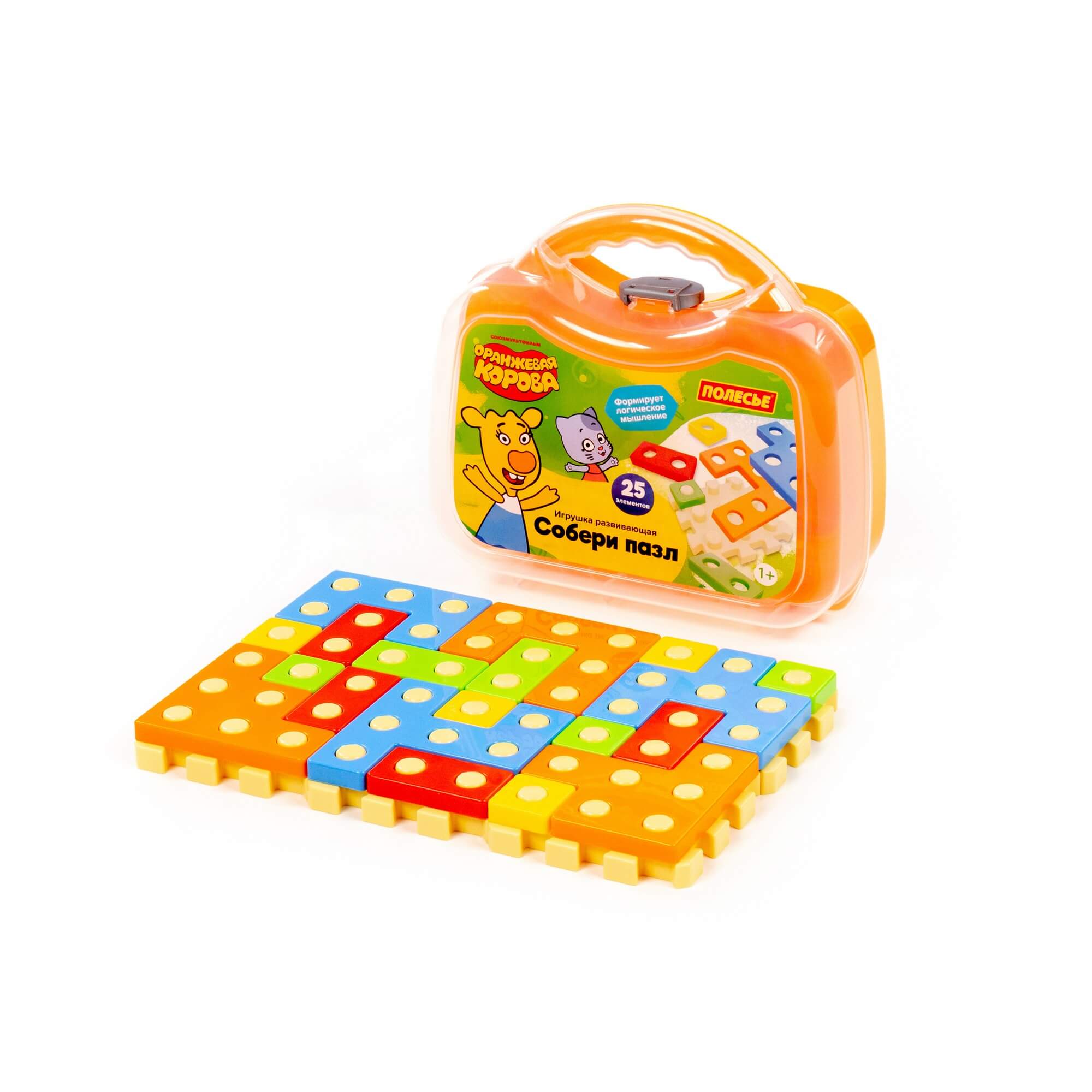 Развивающая игрушка «Собери пазл» от компании «Полесье» теперь с любимыми героями мультфильма «Оранжевая корова». Игрушка упакована в компактный чемоданчик. Ее удобно хранить. Предлагаем вам три различных варианта игры с развивающим пазлом. Каждый из них помогает малышу приобрести новые навыки и развить мелкую моторику, понимание цвета предметов и их формы. В комплекте имеется понятная красочная инструкция. Все элементы пазла выполнены из высококачественных и безопасных материалов, легко между собой стыкуются, имеют форму удобную для детской ручки. Игрушка рекомендуется детям от 1 года. Помогает развивать логическое мышление, воображение, координацию движений, ловкость, навыки по достижению поставленной цели