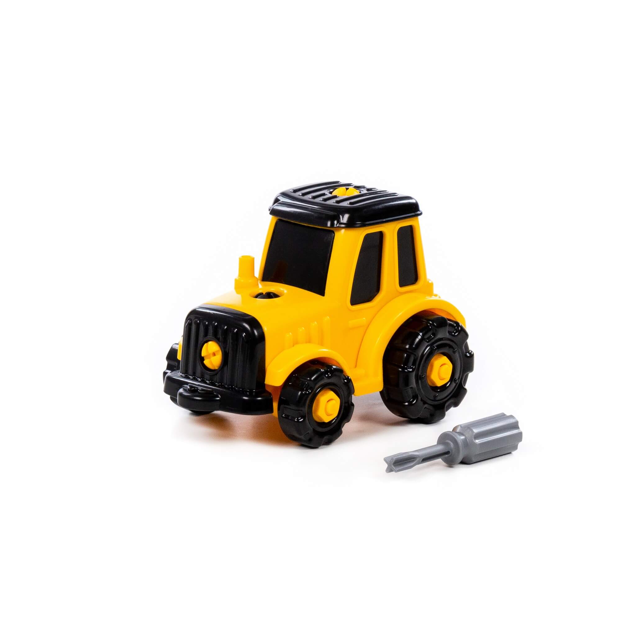 Для самых любопытных малышей, которые хотят поближе познакомиться с разными видами транспорта, фабрика «Полесье» представляет конструктор-транспорт “Трактор». Игрушка выполнена в стильном желто-черном цвете, из качественного материала, имеет округлую форму. Все элементы трактора представлены в виде конструктора, который соединяется с помощью пластмассовых винтов. В наборе также идёт крестообразная отвёртка, которая позволит без труда разбирать и собирать трактор. Игра с таким конструктором знакомит ребёнка с первыми навыками моделирования и конструирования, а также развивает фантазию.