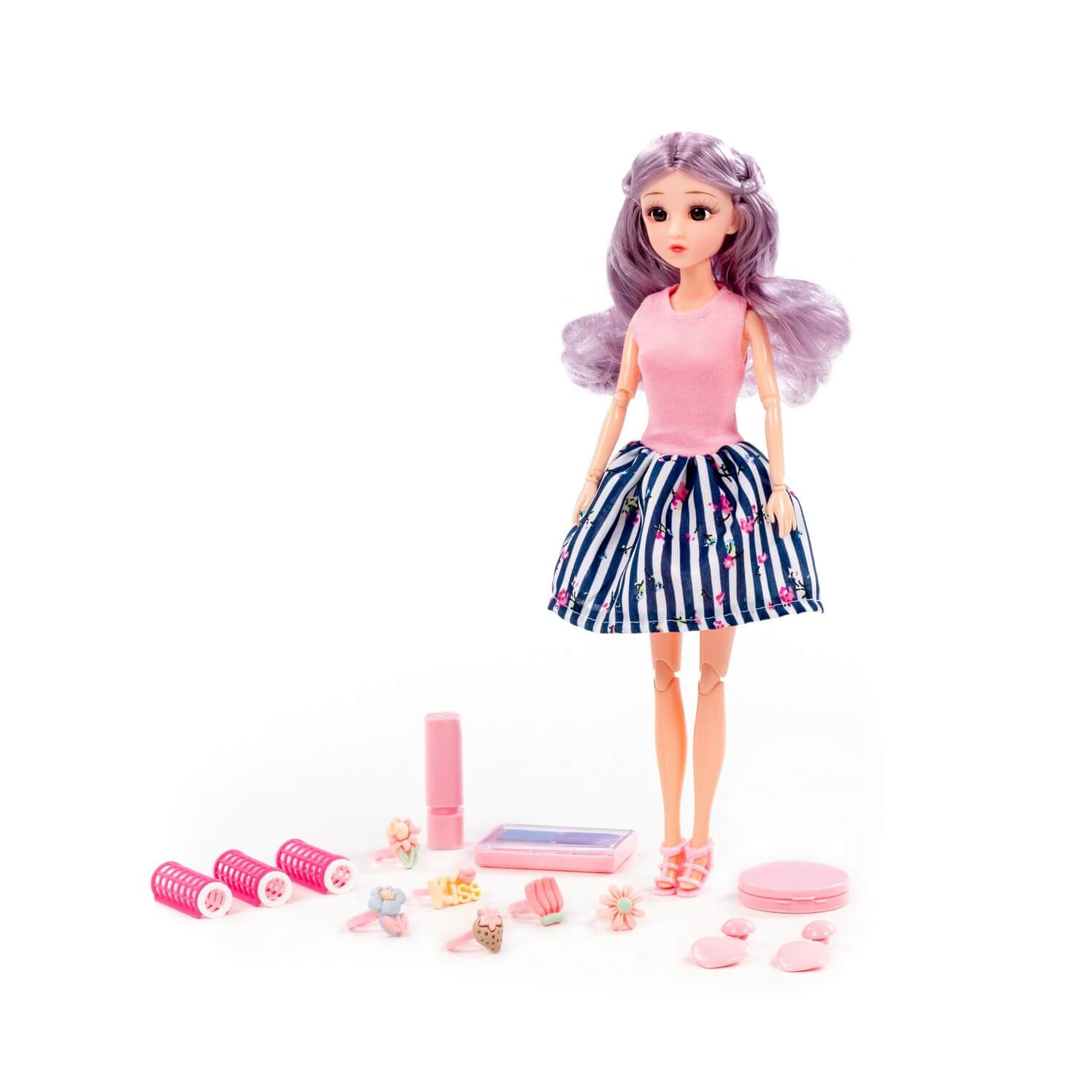 Кукла «Ксюша» – прекрасный подарок для тех, кто ценит изящество и красоту. Игрушка имеет выразительный взгляд, стильную прическу и нарядное платье. Кукла «Ксюша» на шарнирах обладает невероятной гибкостью, может принять практически любую естественную человеческую позу благодаря 11 точкам артикуляции: в области шеи, плеч, локтей, запястий, бедер, коленей. Эти особенности игрушки дают ребенку больше возможностей и позволяют управлять куклой, делая игру более разнообразной и интересной. В наборе с куклой идут бигуди, с помощью которых можно сделать стильную прическу «Ксюше», игрушечные тени для век, помада и пудра, позволяют ребенку почувствовать себя похожей на маму, и поэкспериментировать с игрушечной косметикой, комплект стильных колечек и клипсы, которые дополнят образ малышки. Благодаря наличию тематических аксессуаров ребенок может придумать множество необычных и интересных сценариев игры. Время, проведенное с куклой «Ксюшей», помогает малышу развивать воображение, мелкую моторику, пространственное и ассоциативное мышление. Проигрывая различные ситуации, ролевые модели, ребенок получает возможность развития своих коммуникативных навыков.