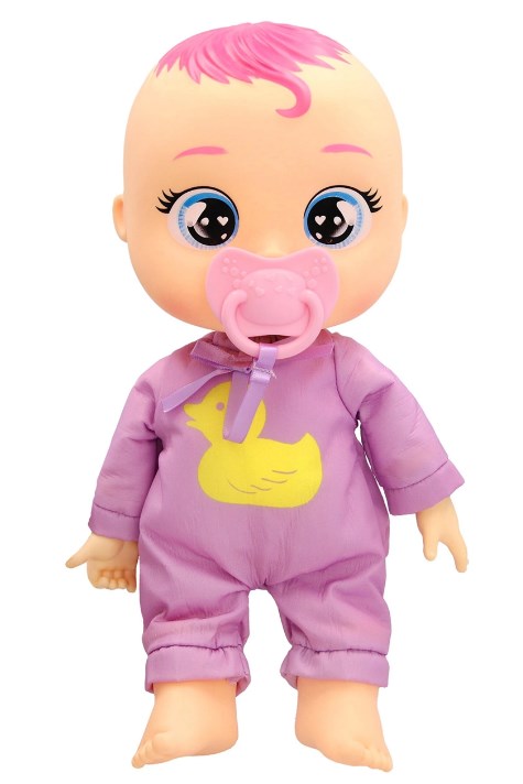 Она реагирует на воду! Малышка лепечет, хихикает и плачет при контакте с водой. С ней можно купаться вместе! После купания оберни её в мягкое полотенце и дай пустышку. Но не стоит расстраивать обворожительную малышку! Если нажать на ее голову, она начнет плакать настоящими слезами.
