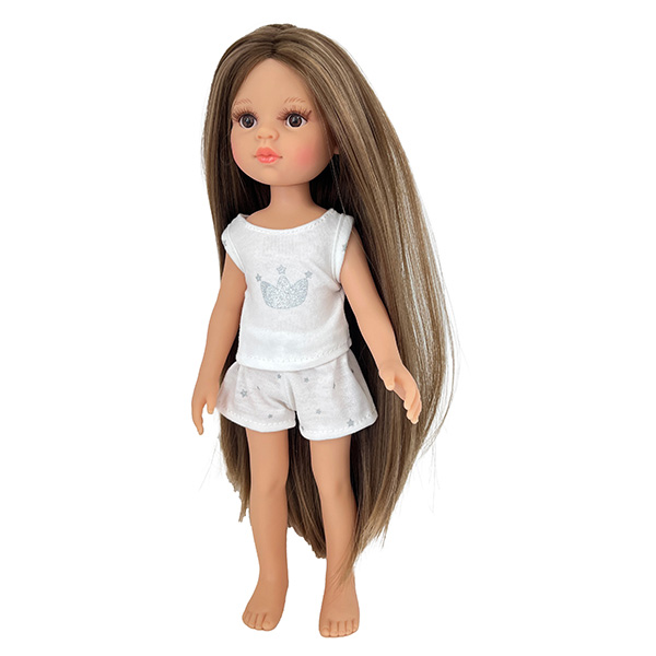 Кукла Лаура с длинными волосами в пижаме полностью выполнена из винила.
