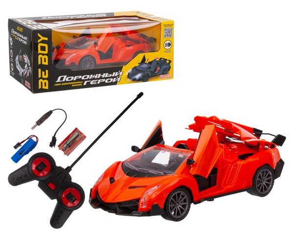 Помимо отличных гоночных данных, при нажатии на кнопку пульта у машинки открываются двери и складывается крыша.