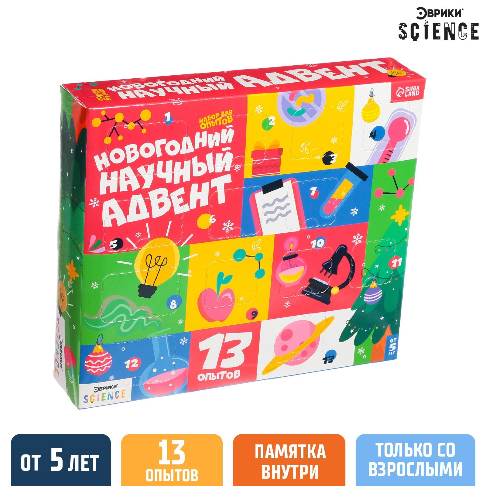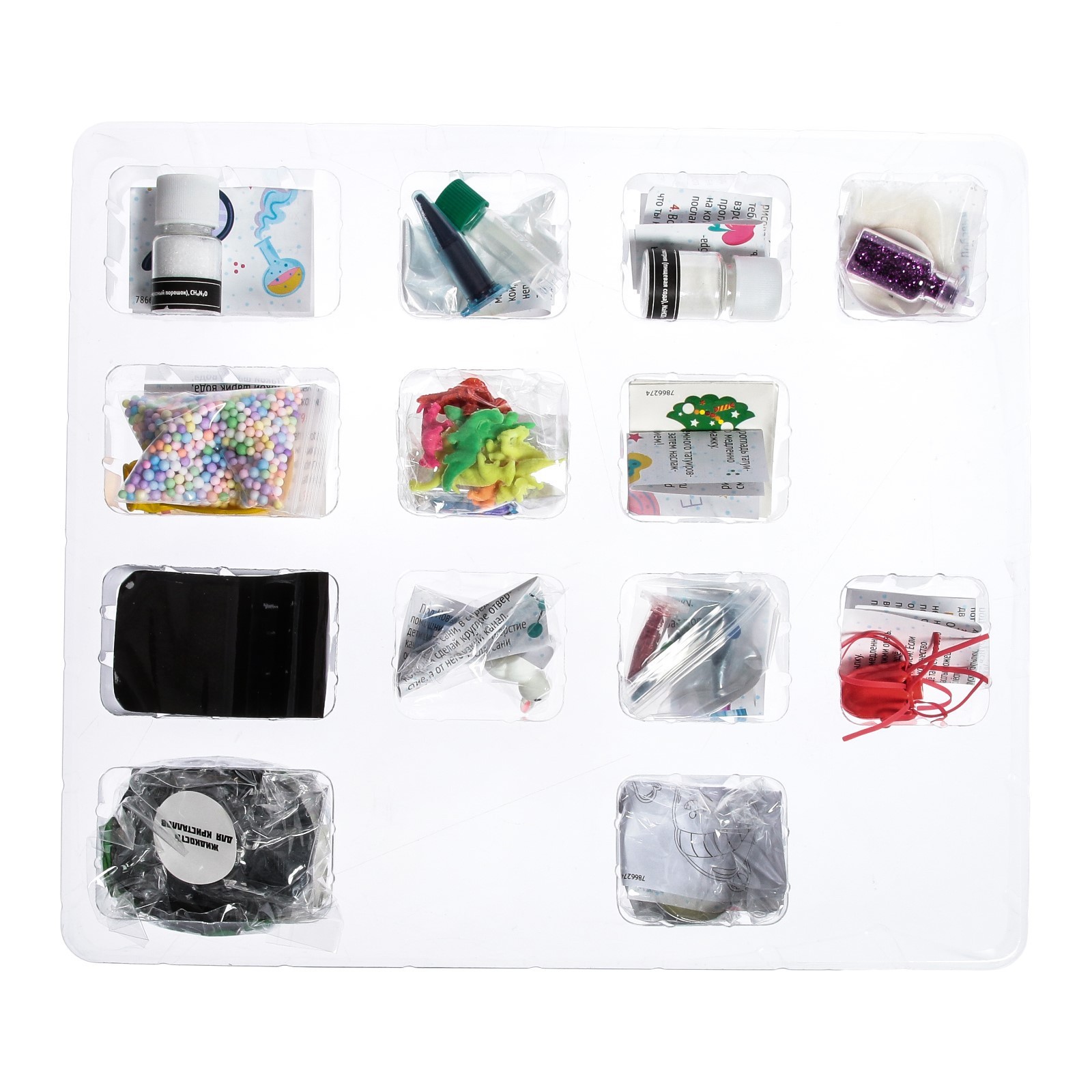 Набор состоит из коробки с 13 окошками. Новый день — это новое окошко, в котором находятся материалы для проведения 13 новогодних опытов.