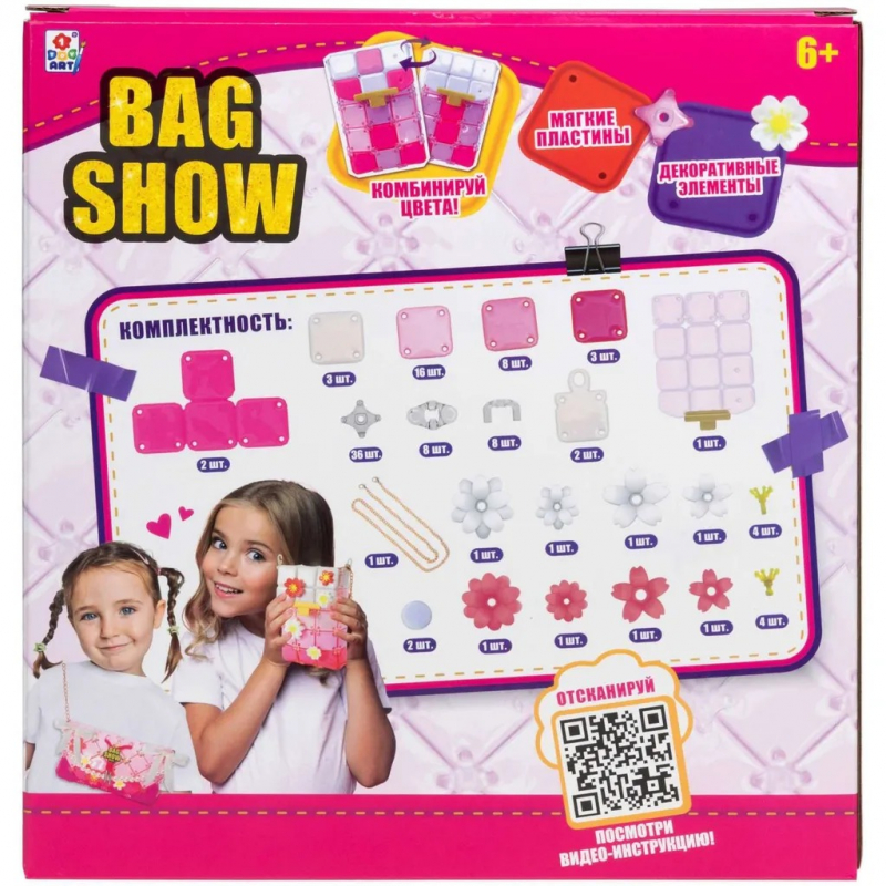 Игровой набор для создания сумочки 1TOY BAG SHOW Spring Flower — это набор для создания украшений, а именно стильной сумки своими руками. Набор для рукоделия идет в красивой упаковке, поэтому это уже готовый подарок для детского творчества. Бэг Шоу включает в себя больше 100 элементов. Собирая штучки для девочек, хорошо развивается мелкая моторика, фантазия, а также развивается внимание. Это однозначное творчество для детей, ведь именно они смогут создать свой уникальный дизайн сумки, комбинируя цвета и аксессуары. Как собирать конструктор для девочки: разместить пластины по трафарету, скрепить, украсить декоративными элементами, и игрушка для девочки, сумочка мечты, которой нет у других, готова! В подарочный набор для девочки даже включена цепочка, чтобы сумку удобно было носить. На коробке есть QR-код, отсканировав который можно посмотреть видео-инструкцию, если что-то не будет получаться или чтобы точно сделать все правильно. Подходят такие детские игрушки для девочек от 6 лет.