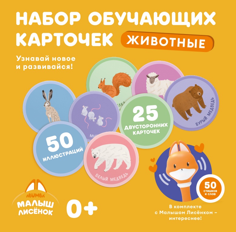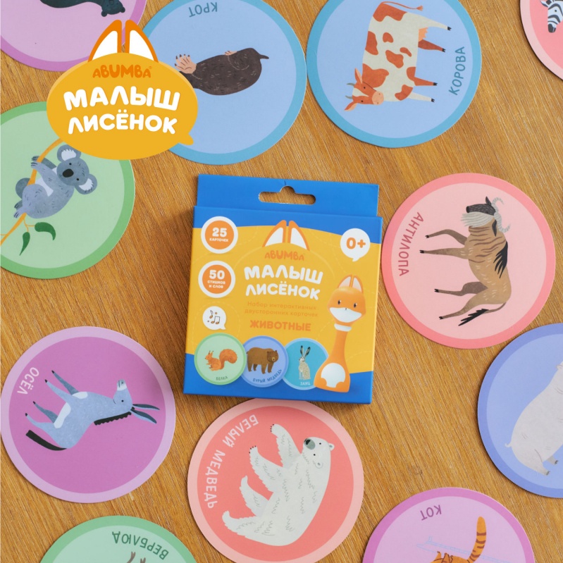 А это – новые обучающие двусторонние карточки «Животные», которые команда Abumba дополнительно разработала специально для меня. Точнее, для вас! Я же – озвучу картинки, расскажу стихи и рассмешу.