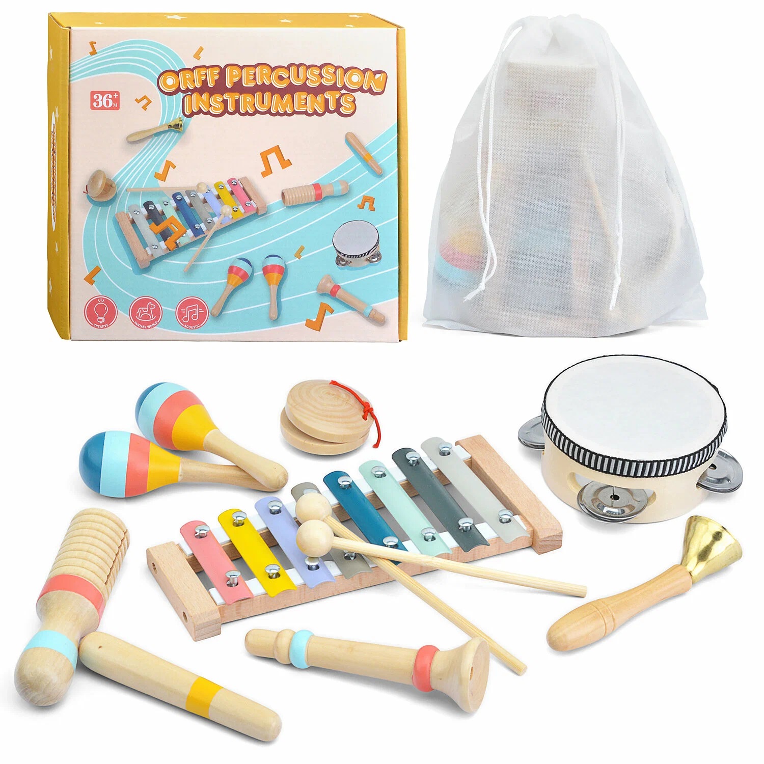 Подарите ребенку первый в его жизни оркестр! Этот экологичный набор из деревянных инструментов откроет мир музыки, ритма и звуков, способствуя развитию слуха, чувства ритма и координации движений.