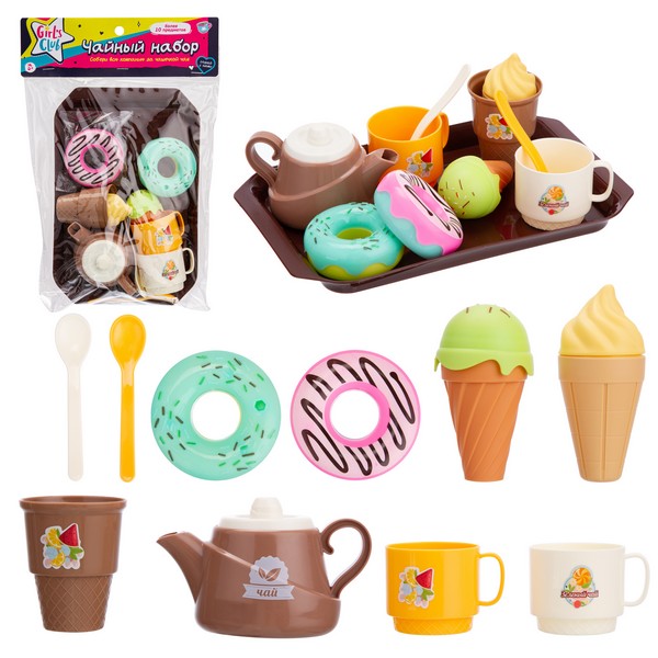 Дополняет сервиз коллекция соблазнительных игрушечных сладостей (пончики и мороженое), превращающая простое чаепитие в настоящий пир.