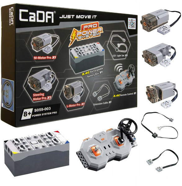 Набор электроники для конструкторов версии PRO от CADA представляет собой набор для моторизации моделей машин из конструктора и позволяет превратить игрушку в радиоуправляемую модель.