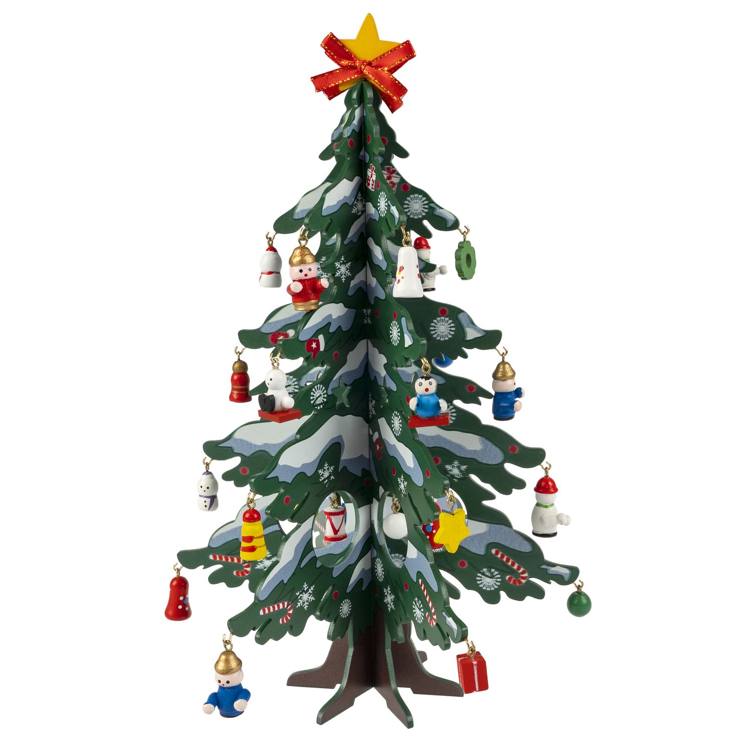 Работать с деревянным конструктором просто и очень интересно. Соедините три части каркаса и украсьте елочку милыми миниатюрными игрушками. Осталось только поставить красочную сборную модель на видное место, например, на стол, и радоваться результату!