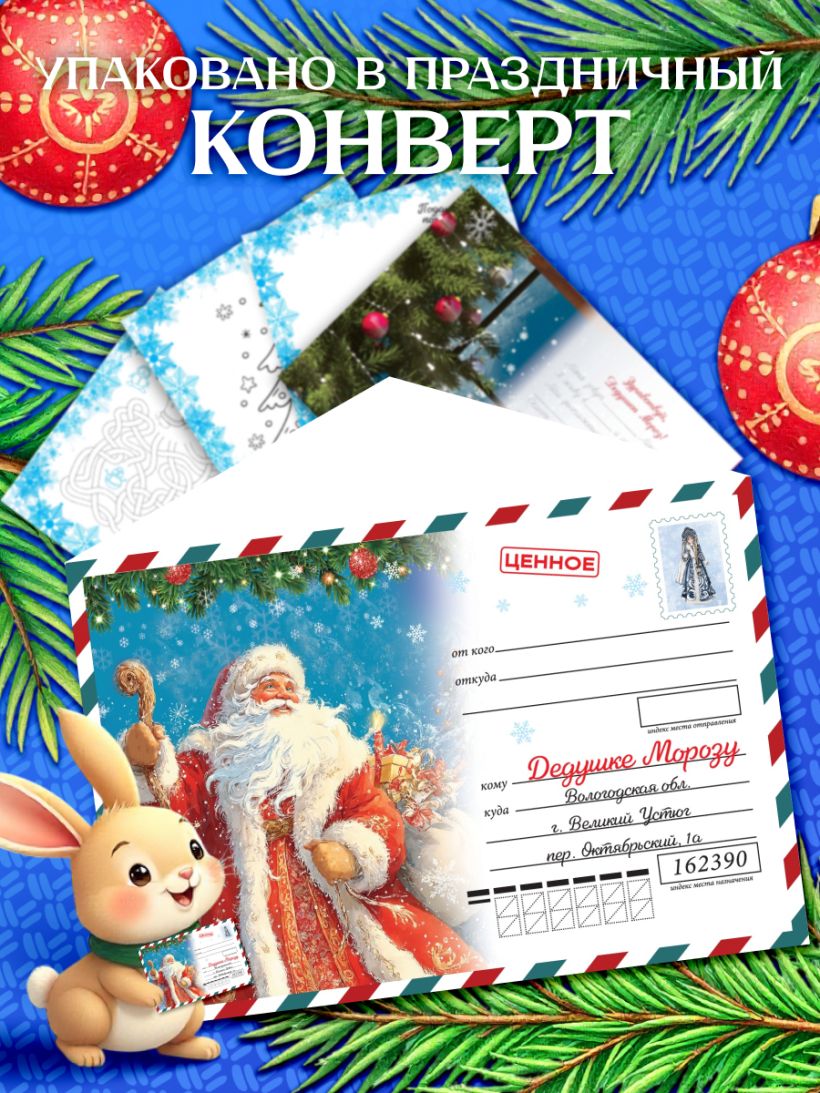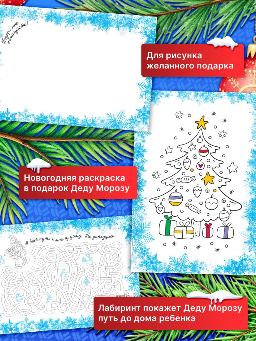 Новогодний набор для творчества «Моё первое письмо Деду Морозу» создан для детей 7 – 8 – 9 лет, которые готовятся к зимнему празднику. В набор входит красочный конверт с изображением Деда Мороза, лист с макетом письма Деду Морозу для заполнения – с пунктирными прописными буквами и свободными полями для собственного текста, а на обратной стороне раскраска с новогодним рисунком, который станет подарком Деду Морозу. Картонная перегородка внутри позволяет сохранить письмо с конвертом в идеальном состоянии. Ещё один лист содержит развивающие задания: лабиринт и свободное место, где ребёнку нужно нарисовать желаемый подарок. Этот подарочный набор для детей помогает развивать навыки письма, творческое мышление и внимание через игру. Комплект станет отличным выбором как подарок сыну, дочке, племяннику или племяннице. Его можно также дарить одноклассникам, участникам школьного утренника. Этот недорогой и простой, но замечательный подарок гарантированно наполнит теплом и радостью атмосферу подготовки к Новому году дома или в школе.