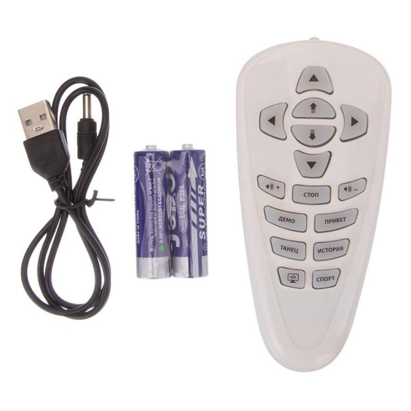 – робот работает от аккумулятора с USB зарядкой (в комплекте), обеспечивая долгую непрерывную игру и простую зарядку, что более выгодно и экономично в сравнении с обычными батарейками.