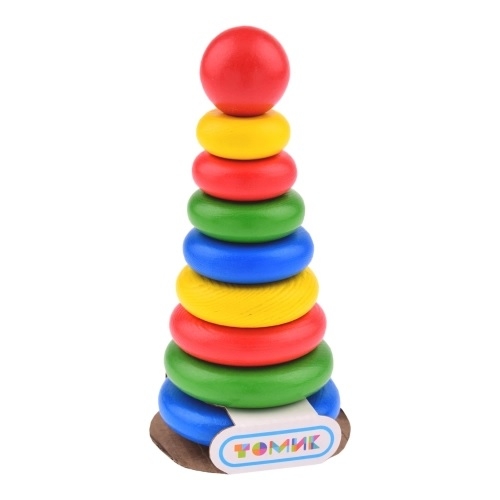 Классическая деревянная пирамидка ТМ Томик это та самая, настоящая пирамидка из детства, с запахом дерева и яркими цветами. 7 разноцветных колечек, макушка, безопасное основание – качалка, все это пирамидка 9 деталей, которая станет одной из первых развивающих игрушек ребенка. Деревянные колечки приятно держать в руках, они легко снимаются и одеваются на ось пирамидки. Можно сложить их по размеру, по цветам или по своему настроению. Игра в пирамидку развивает координацию движений, мелкую моторику, логику, учит ребенка отличать цвета и размеры. Пирамидка изготовлена из цельного дерева, состоит из 9 деталей, покрашена водными экологичными красками.