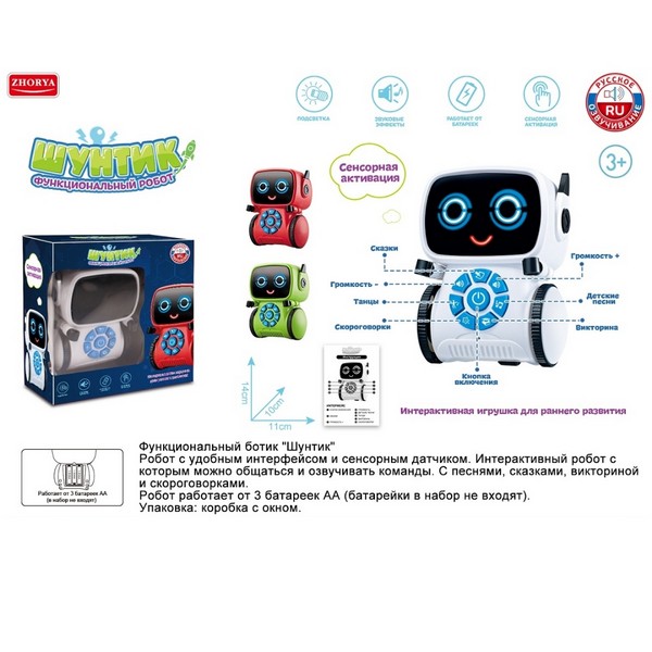 Робот “Шунтик” интерактивный, песни, сказки, скороговорки, викторина, 3 цв. в ассорт., в/к 21,5*20*11,3 см