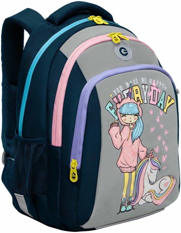 Рюкзак GRIZZLY разработан для учащихся начальной и средней школы. Анатомическая спинка и удобные лямки позволяют равномерно распределять нагрузку на спину и плечи.