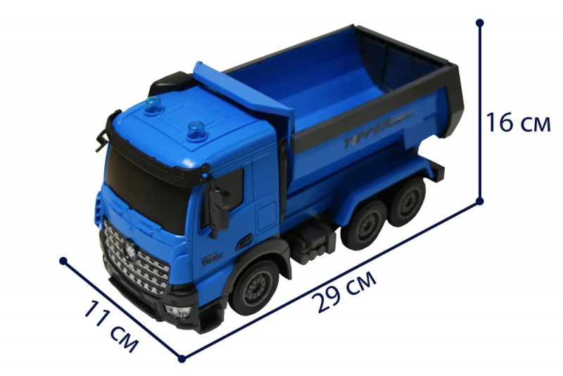 Управление происходит на расстоянии 30 метров, а время работы на одном заряде составляет около 30 минут. С этим самосвалом будет интересно играть как взрослому, так и ребенку, ведь вы будете управлять настоящей строительной техникой
