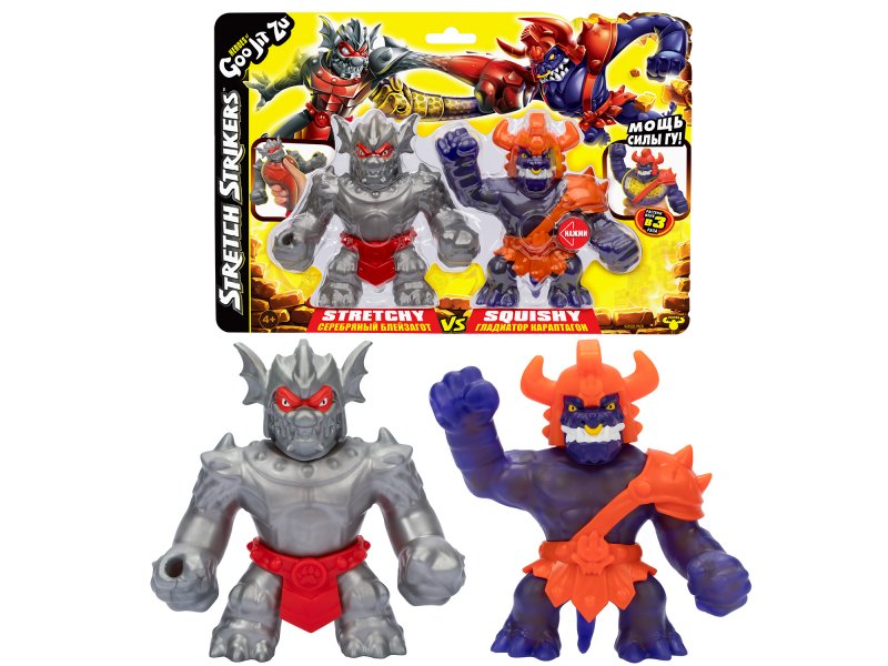Собери всех бойцов из линейки древнего ордена Стретч Страйкерс, чтобы создать абсолютное эпическое столкновение между добром и злом! Каждый из них растягивается в 3 раза и легко принимает свой первоначальный облик. Так что, кто победит, решаешь только ты! Выдержит ли Серебряный Блейзагот натиск Гладиатора Караптагона?
