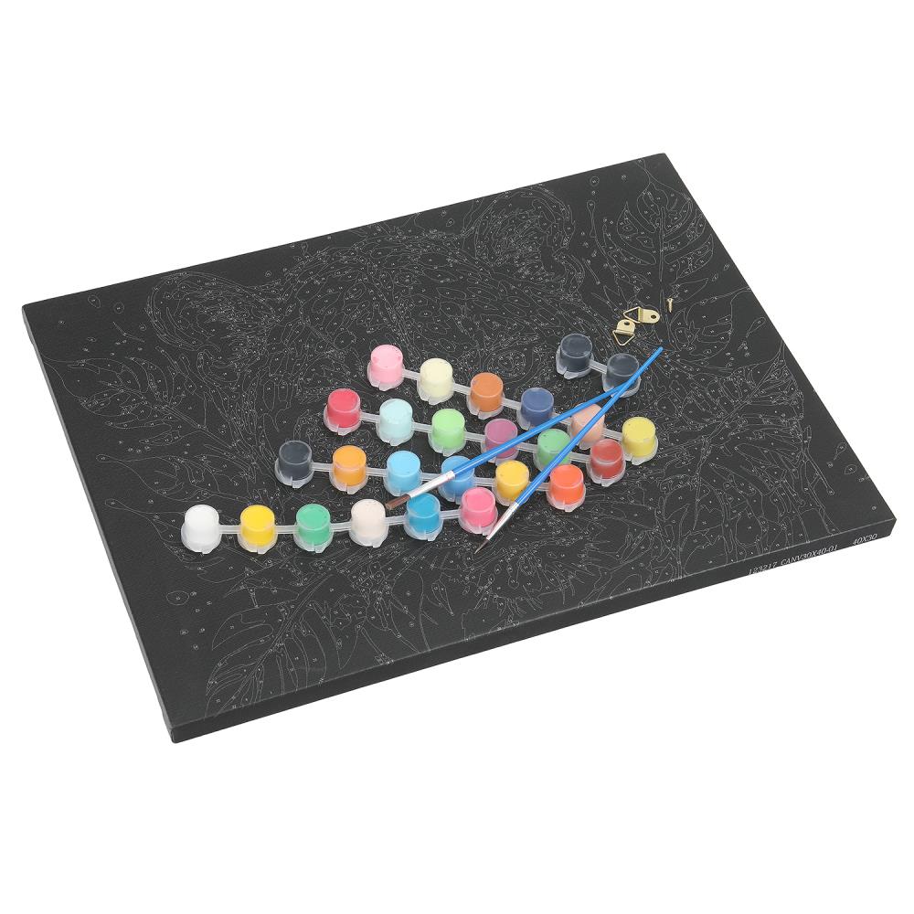 Ребёнок увлекательно и с пользой проведёт время, расписывая эффектный чёрный холст с нанесённой основой и цветовыми подсказками. Готовую картину можно использовать для украшения комнаты или в качестве подарка, сделанного своими руками.