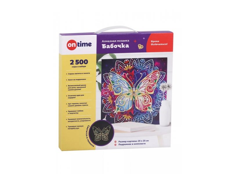 Душа требует творчества и арт-терапии? Тогда этот набор точно для вас! В комплекте есть все необходимое, чтобы создать необычный декор для дома – алмазную мозаику «Бабочка». Задача не так проста, как может показаться. Здесь нужна внимательность, аккуратность и отточенность движений, но результат точно того стоит! Готовую картину будет видно даже ночью, потому что некоторые стразы светятся в темноте.