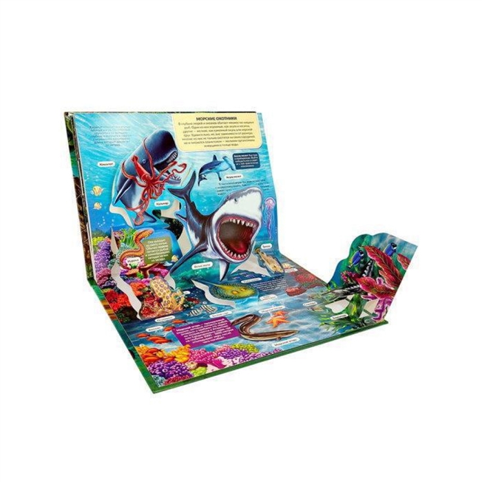 Яркая энциклопедия “Хищники” в формате книжки-панорамки с удивительными объемными иллюстрациями. 3D развороты создают ощущение дополненной реальности. Также на разворотах книги находятся откидные клапаны-сюрпризы, заглянув под которые малыш увидит интересный факт или изображение. Наличие объемных и открывающихся элементов развивает мелкую моторику и пространственное мышление ребенка. Размер обложки: 26х20 см, 5 объемных разворотов. Порадуйте своего ребенка увлекательной энциклопедией-панорамкой с яркими, объемными иллюстрациями!