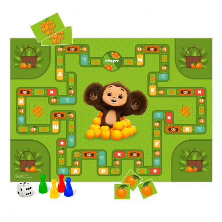 Урра, Чебурра…шка! Игра-ходилка – теперь с любимым героем! Бросай кубик, собирай и отдавай апельсинки, называй слова на буквы Ч, Е, Б, У, Р, А, Ш, К, А – и принеси в своей корзинке больше всего апельсинов. Игра развивает мелкую моторику, скорость реакции, учит быть внимательным, идти к цели и побеждать. Игра выпущена по лицензии. Рекомендованный возраст 6+, количество игроков – 2-4.