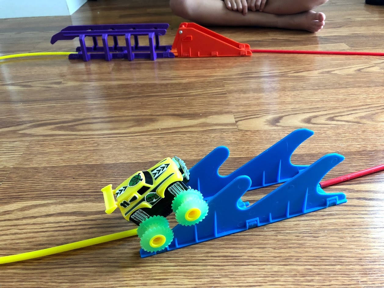 Делайте препятствия на пути машинки, своими большими колесами она преодолеет любые преграды. А также эта замечательная игрушка может делать безумные акробатические трюки и даже ездить по канатной дороге всего на двух колесах.