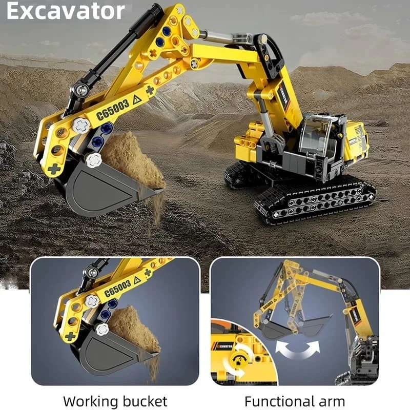 Конструктор от CADA представляет собой набор для постройки экскаватора из 467 деталей. Имеет подвижный манипулятор с ковшом. Кабина вращается на 360 градусов.