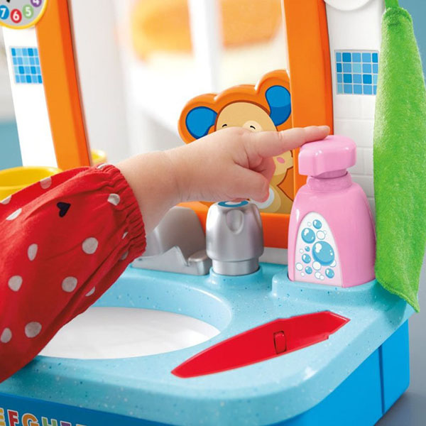 Благодаря технологии Smart Stages и специальному переключателю, вы сможете менять подход к обучению малыша, по мере того, как он растёт и учится, ведь у каждого малыша свой темп. Умывальник научит малыша гигиеническим процедурам, здоровым привычкам, названиям предметов, цветам и буквам. Обучение будет веселым, благодаря звуковому сопровождению.
