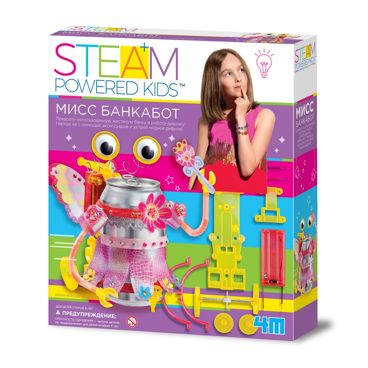 Превратите использованную жестяную банку в робота-девочку, нарядите ее с помощью аксессуаров и устройте модное дефиле! Не нужно быть волшебником, чтобы оживлять предметы, просто соберите набор “Мисс Банкабот”.