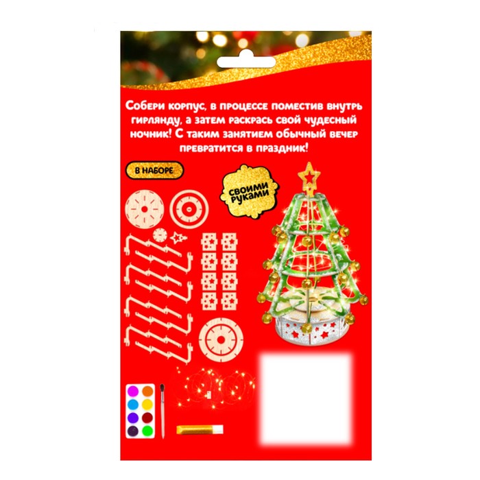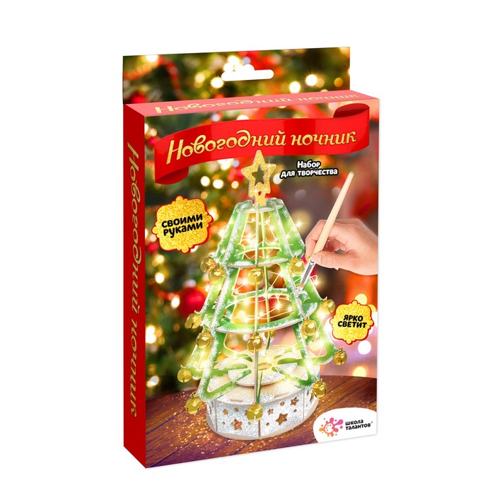 С набором для творчества «Новогодний ночник» у вас получится создать стильный светильник. Для этого в наборе вы найдёте всё необходимое.