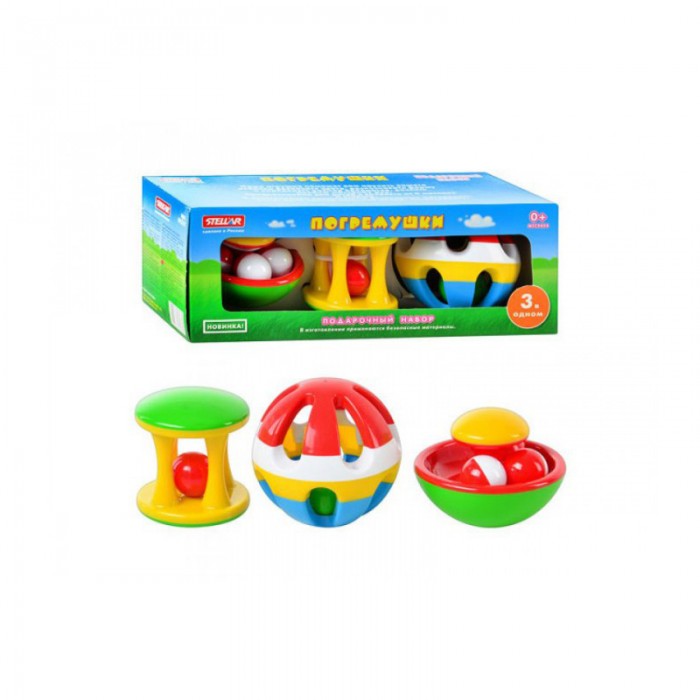 Подарочный набор погремушек заинтересует новорожденных своими цветами и звуками перекатывавшихся шариков. Малышей постарше привлечет возможность исследовать погремушки. Им понравится пробовать вытаскивать шарики (шарики не достаются), проталкивать их пальчиками через отверстия, катать игрушки по наклонным и прямым поверхностям.